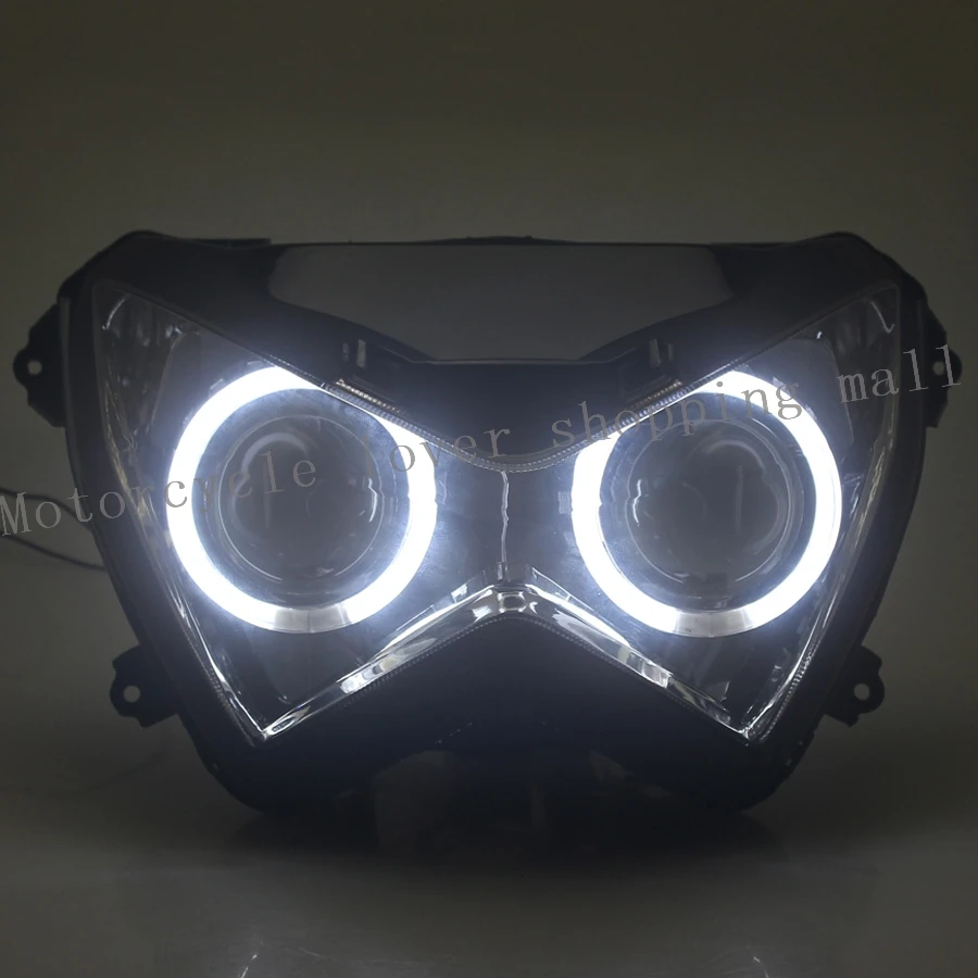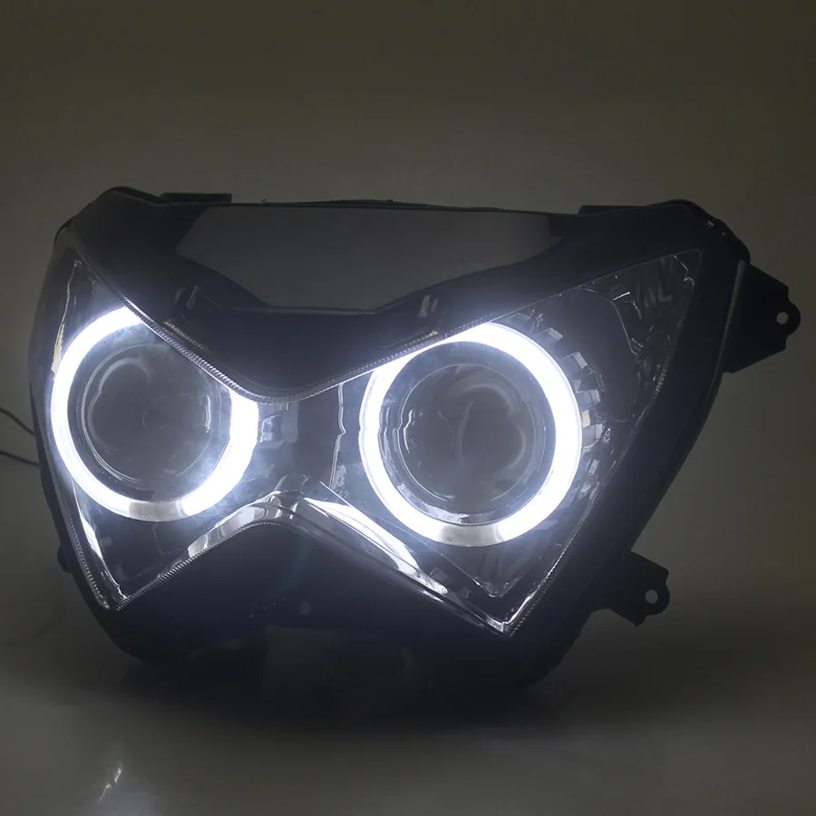 Motorcycle Accesorios Angel Eye LED Headlight Assembly Projector HID Xenon Head Light Faros Led Moto For Kawasaki Z800 Z250 Z300