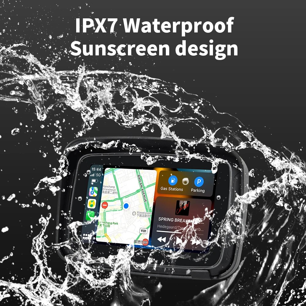TIEBRO 5.0 Inch Motorcycle Wireless Carplay Android Auto Portable Moto GPS Navigation Screen IPX7 Waterproof Display BT